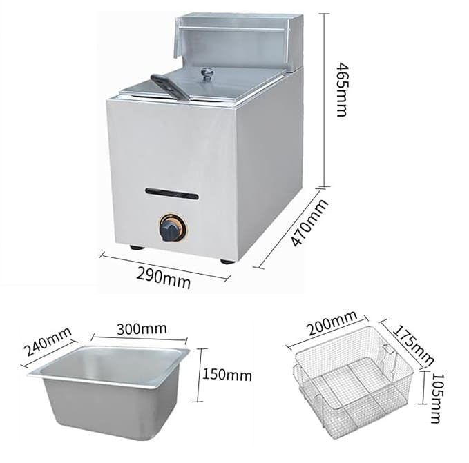 La freidora a gas Gastro GFY-71 está fabricada en resistente acero inoxidable y diseñada para cocinas profesionales que necesitan rapidez y eficiencia. Funciona con gas GLP a una presión de 2800Pa e incluye una canastilla ideal para frituras uniformes. Su tamaño compacto y su bandeja de aceite de gran capacidad la convierten en la opción perfecta para restaurantes, cafeterías y food trucks.
